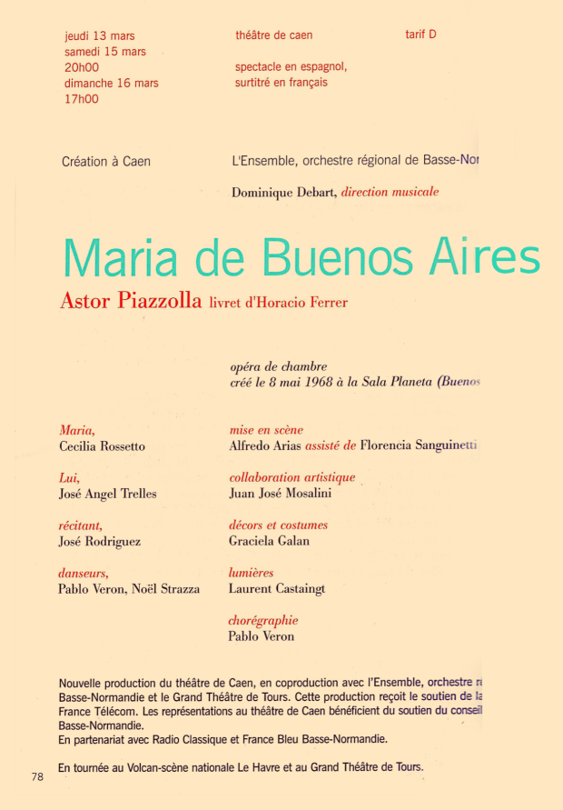Nom du spectacle: MARÍA DE BUENOS AIRES