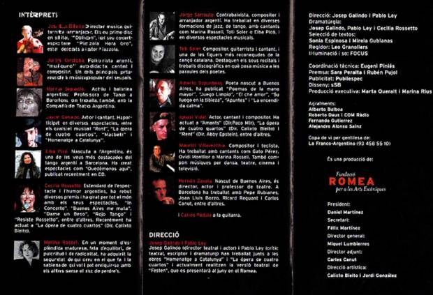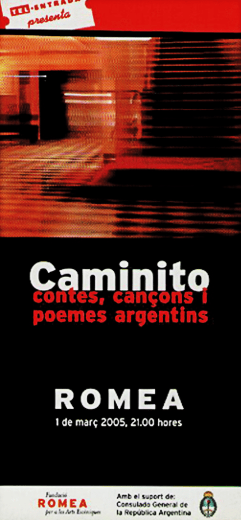 La sección de Asuntos Culturales inicia actividades de producción y gestión convocando a escritores, directores y músicos argentinos residentes en Catalunya para la realización de un espectáculo musical titulado Caminito.